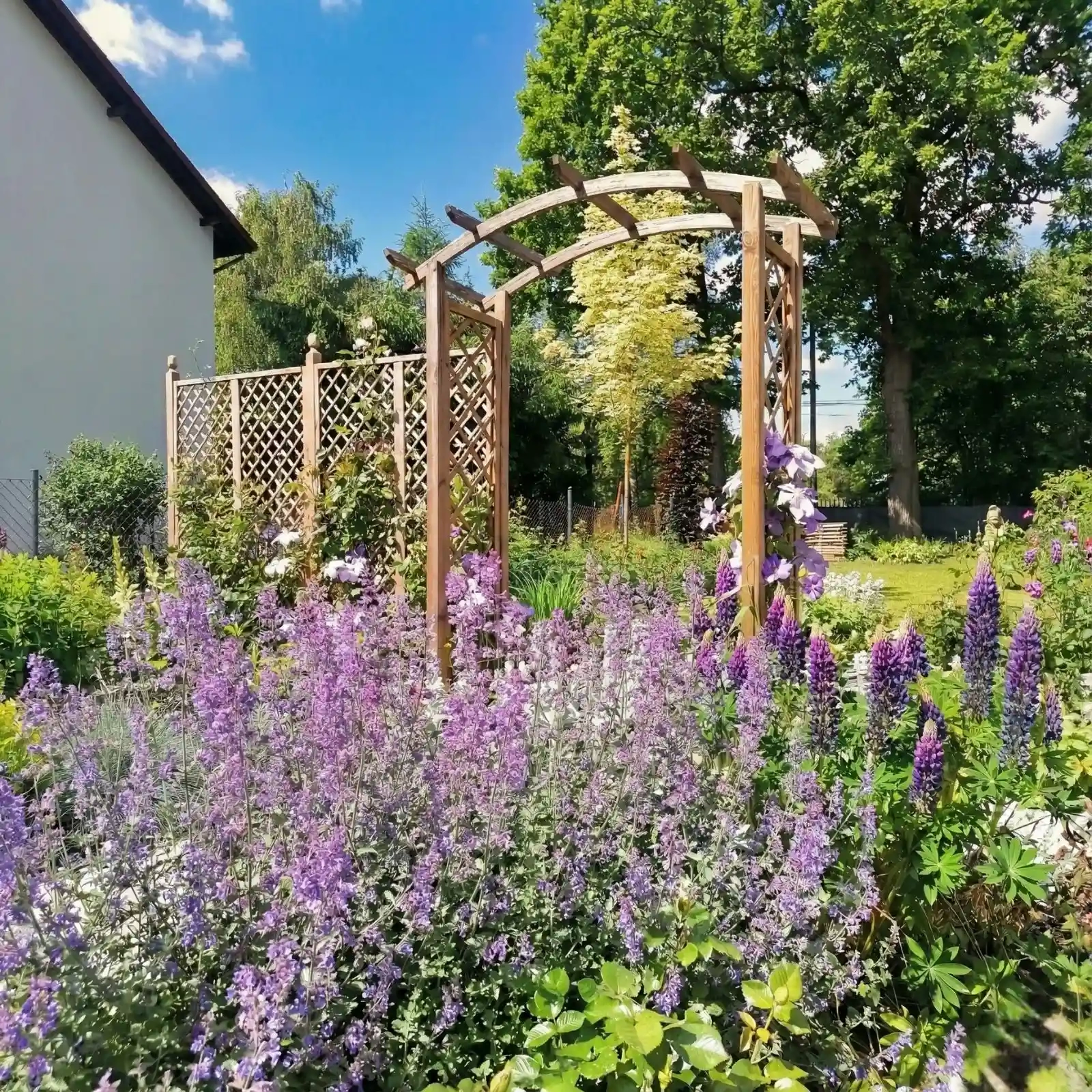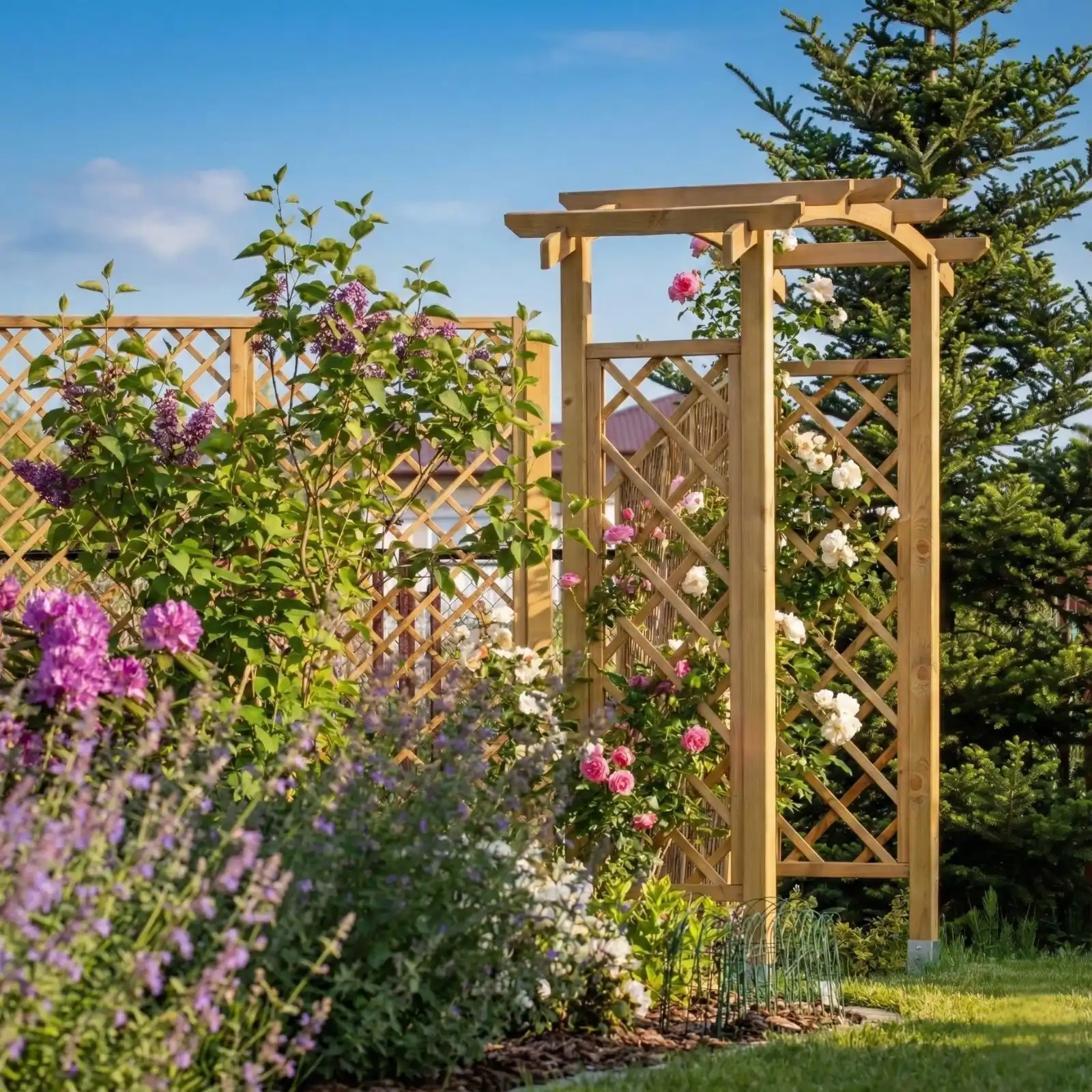 - Diagonal trellis panels: Positioned on both sides, they support the growth of climbing plants.