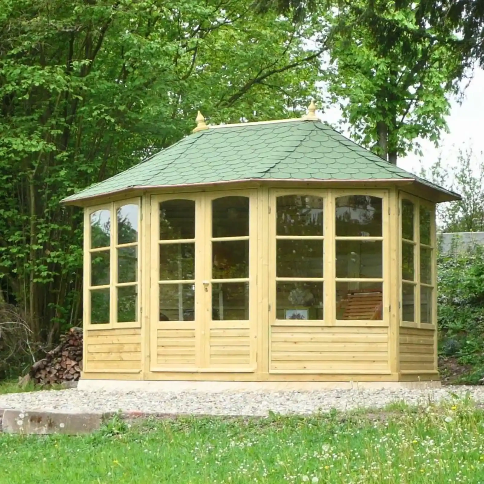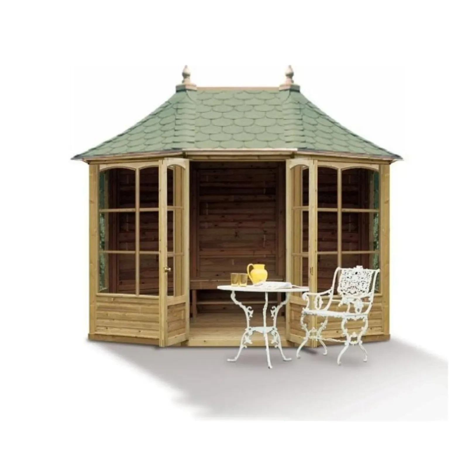 • The Harrogate Summerhouse Pavilion is a traditional garden Pavillion. It is a large wooden summerhouse with double doors that will provide plenty of room for entertaining or it can be used to simply sit and relax taking in the views of your garden.