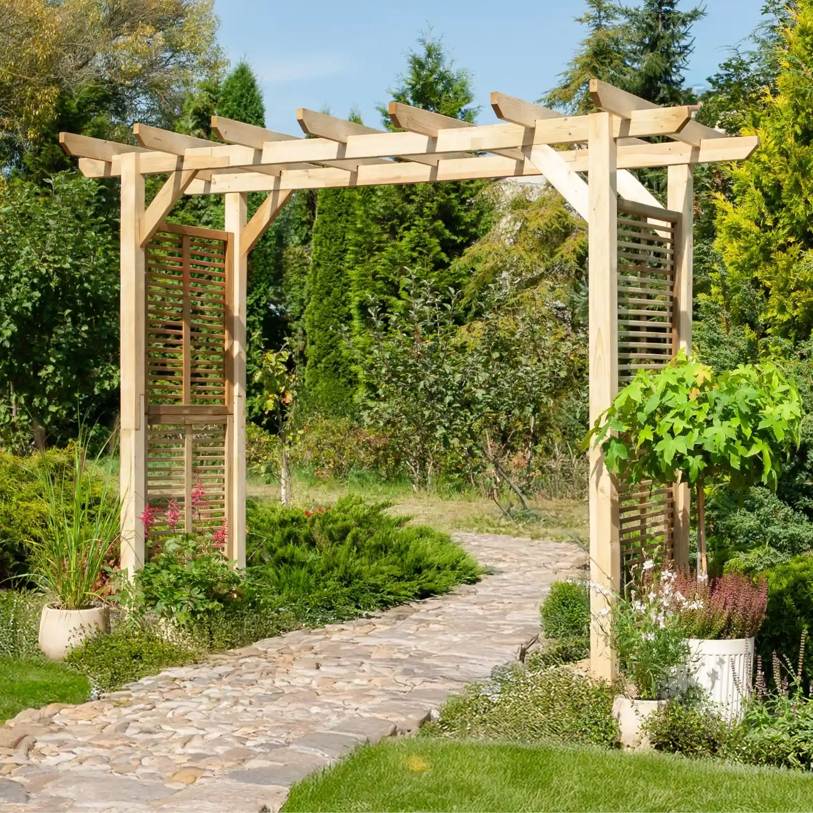Transform your outdoor space with the Henley Arch Contemporary Pergola, designed for both beauty and functionality. Crafted from durable, weather-resistant materials, this pergola offers a shaded retreat for relaxation, entertaining, or supporting climbing plants. Its spacious design accommodates outdoor furniture, making it ideal for alfresco dining or lounging. Easy to assemble and maintain, it’s a stylish, low-maintenance addition that enhances your landscape and adds value to your property.
