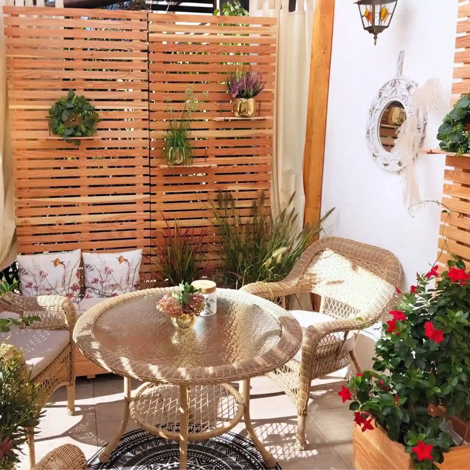 - A modern rhomboid louvre panel. Protects from outside view, wind or sun and supports climbing plants.