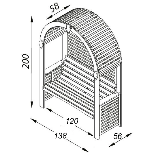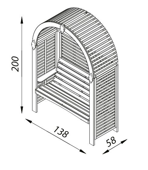 • Roccolo Arbour features a comfortable, ergonomic bench designed for two people. It’s easy and intuitive to assemble. The semicircular roof provides shade while its classic shape suits a variety of garden styles.