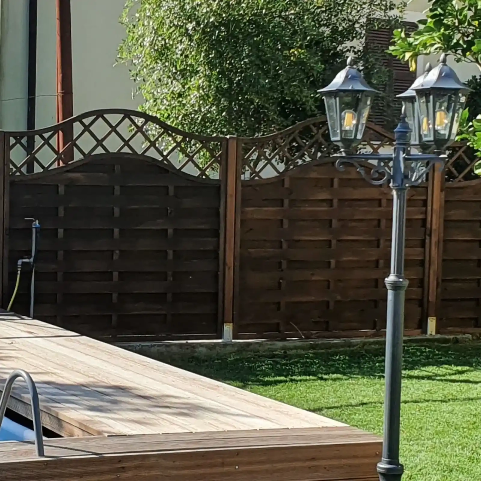 • These fence panels have a horizontal board-on-board pattern with a beautifully curved trellis top. Manufactured from FSC approved pressure treated Northern European Redwood.