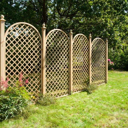 - Our Rose Trellis is manufactured from pressure treated Northern European Redwood. With it's beautiful design this garden trellis offers an attractive way of fencing your garden and provides the perfect base for climbing plants.